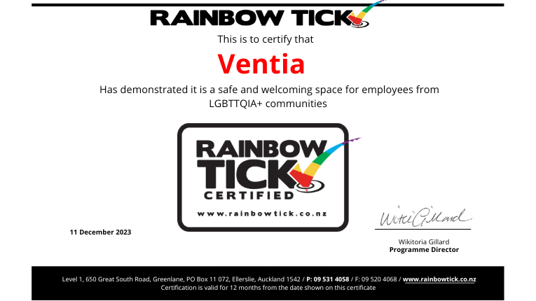 We are really proud to confirm the re-accreditation of our Rainbow Tick in New Zealand. This “Tick” recognises the work being done to ensure everyone at Ventia feels included.